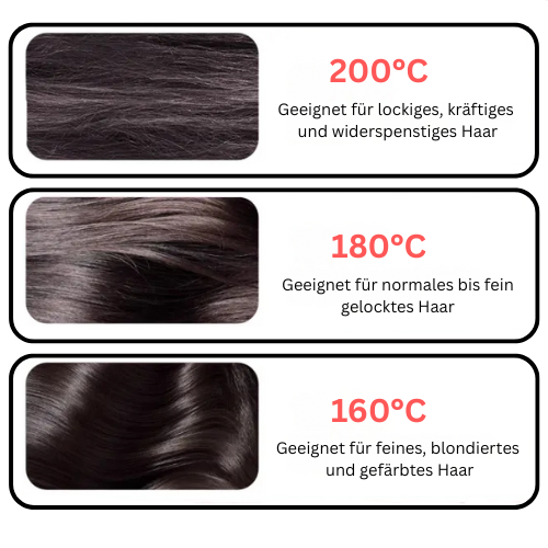 160°C, 180°C, 200°C – für alle Haartypen geeignet, von fein bis dick.