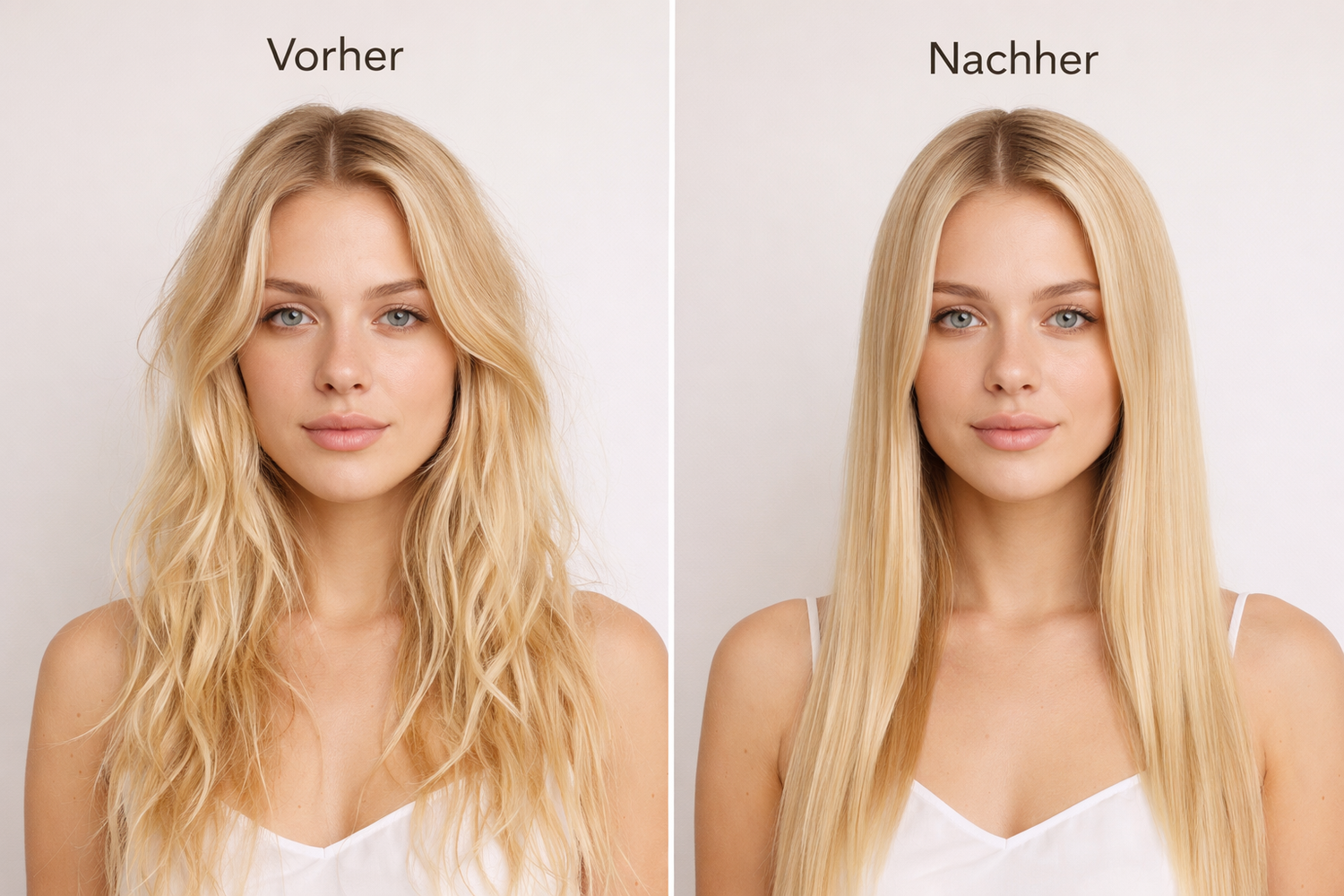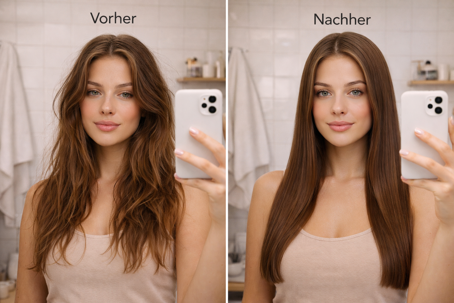 Bei normaler Haarstruktur genügt in der Regel ein Durchgang pro Strähne. Sehr dickes Haar braucht 1–3 langsame Durchgänge, um ein langanhaltend glattes Ergebnis zu erzielen.
