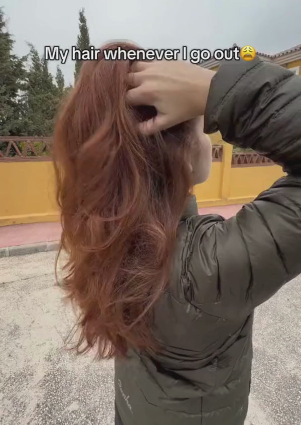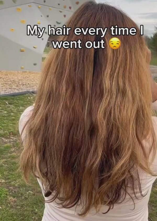 Unser Mini-Glättkamm macht aus deinem widerspenstigen Haar seidig glatte Strähnen. Erlebe den Glow-up von kraus zu glänzend glatt in nur einer Anwendung.